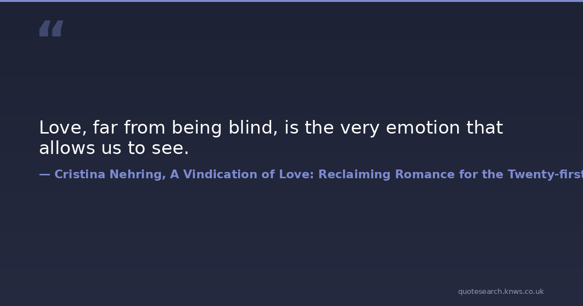 Love, far from being blind, is the very emotion that allows us to see. insight love passion perception Download Image Share on X Share on Facebook Copy Link
