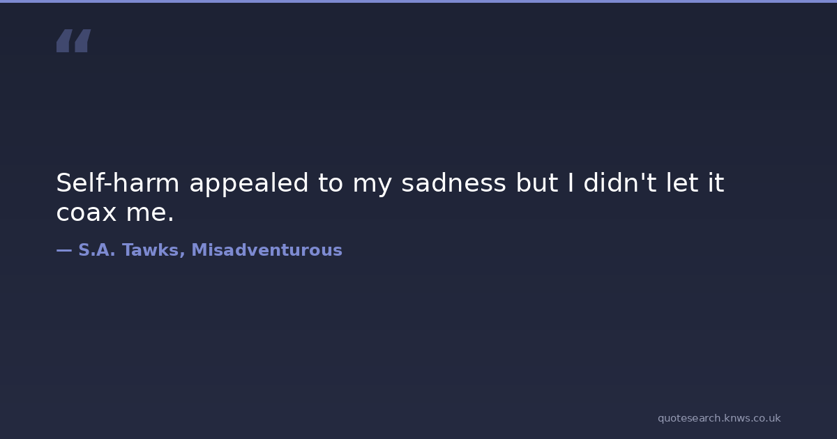 Self-harm appealed to my sadness but I didn't let it coax me. adventure adventurous australia brisbane crime queensland Download Image Share on X Share on Facebook Copy Link