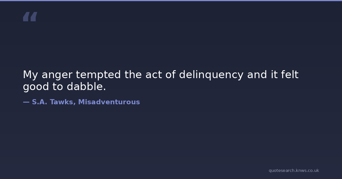 My anger tempted the act of delinquency and it felt good to dabble.