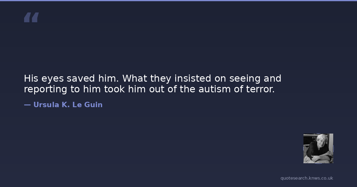 His eyes saved him. What they insisted on seeing and reporting to him took him out of the autism of terror.