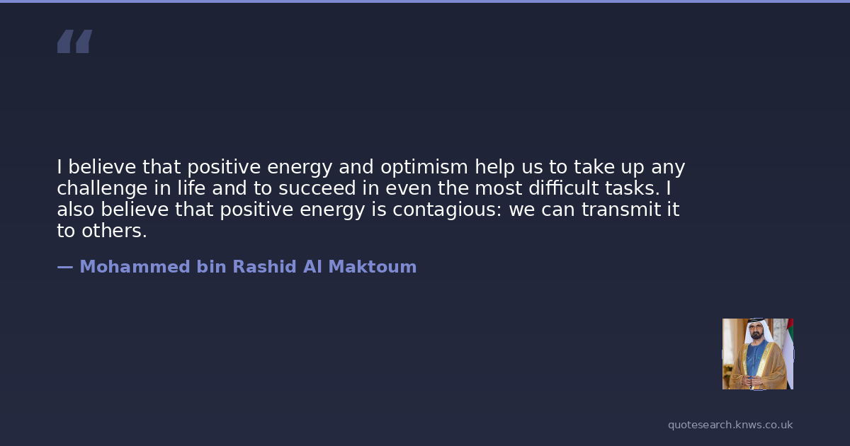 I believe that positive energy and optimism help us to take up any challenge in life and to succeed in even the most difficult tasks. I also believe that positive energy is contagious: we can transmit it to others.