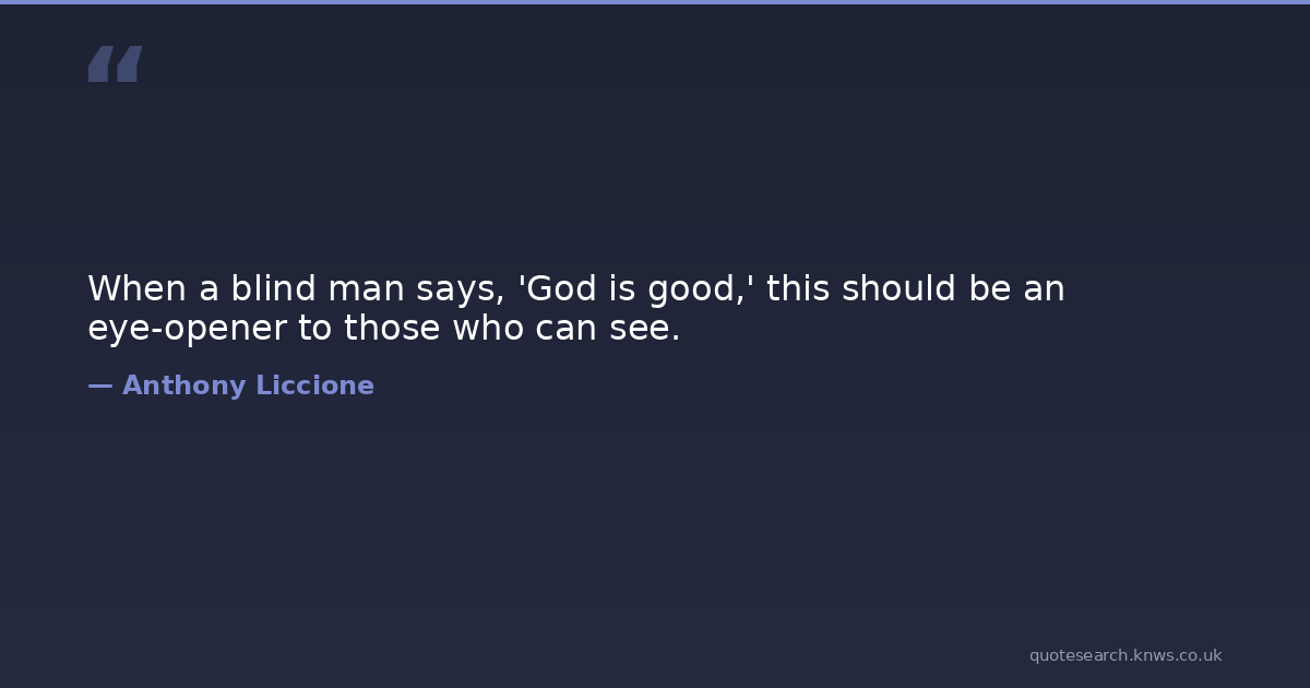 When a blind man says, 'God is good,' this should be an eye-opener to those who can see.