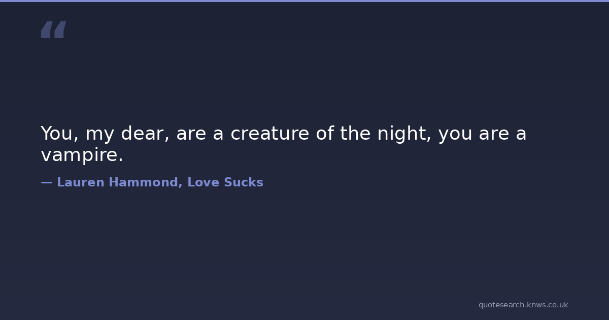 You, my dear, are a creature of the night, you are a vampire. paranormal-romance romance vampires Download Image Share on X Share on Facebook Copy Link