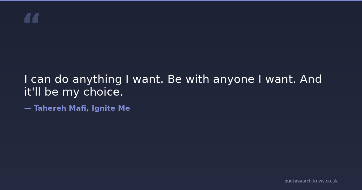 I can do anything I want. Be with anyone I want. And it'll be my choice. choices Download Image Share on X Share on Facebook Copy Link
