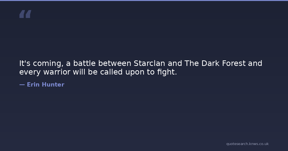 It's coming, a battle between Starclan and The Dark Forest and every warrior will be called upon to fight.