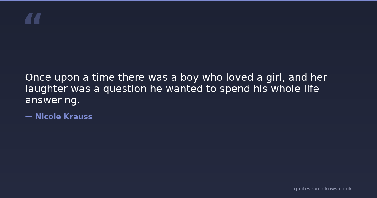 Once upon a time there was a boy who loved a girl, and her laughter was a question he wanted to spend his whole life answering.