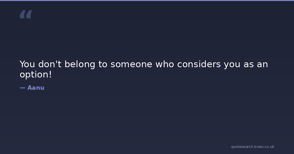 You don't belong to someone who considers you as an option! choices option Download Image Share on X Share on Facebook Copy Link