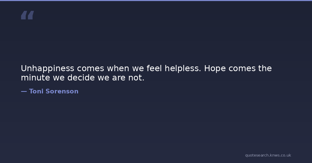 Unhappiness comes when we feel helpless. Hope comes the minute we decide we are not.