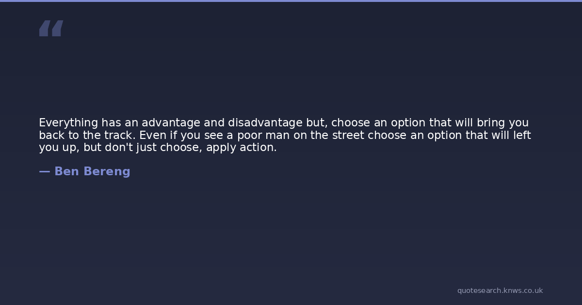 Everything has an advantage and disadvantage but, choose an option that will bring you back to the track. Even if you see a poor man on the street choose an option that will left you up, but don't just choose, apply action.