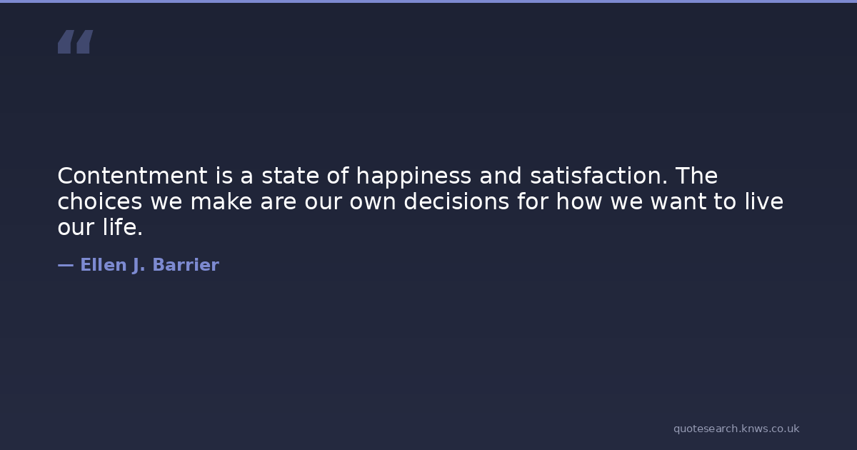 Contentment is a state of happiness and satisfaction. The choices we make are our own decisions for how we want to live our life.