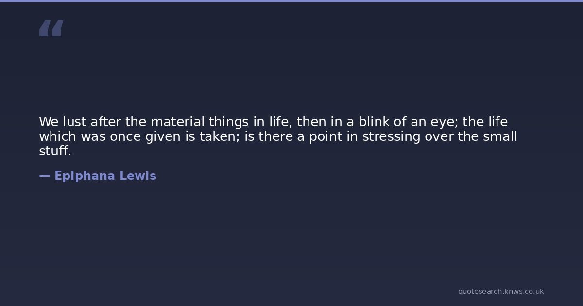 We lust after the material things in life, then in a blink of an eye; the life which was once given is taken; is there a point in stressing over the small stuff.