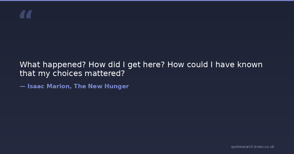 What happened? How did I get here? How could I have known that my choices mattered?