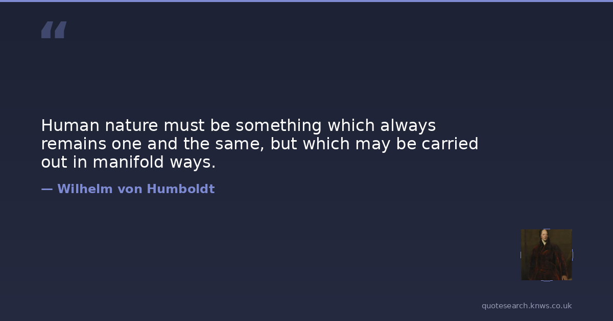 Human nature must be something which always remains one and the same, but which may be carried out in manifold ways.