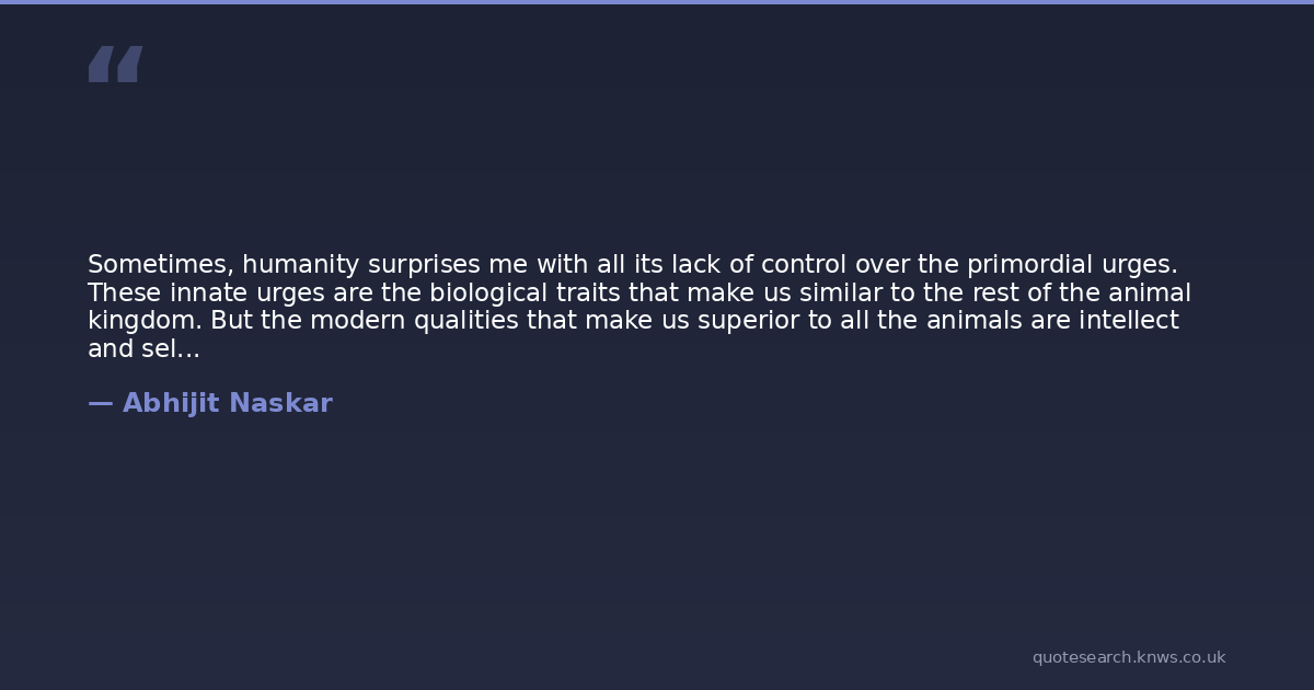 Sometimes, humanity surprises me with all its lack of control over the primordial urges. These innate urges are the biological traits that make us similar to the rest of the animal kingdom. But the modern qualities that make us superior to all the animals are intellect and self-control.