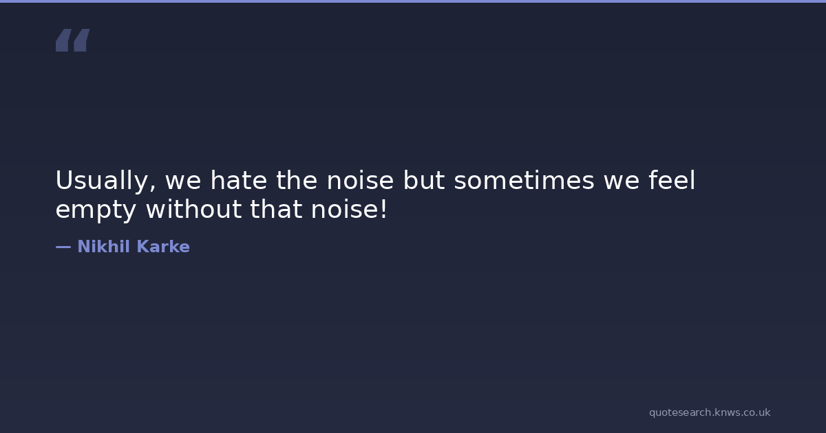 Usually, we hate the noise but sometimes we feel empty without that noise! human-nature life-and-death life-lessons life-quotes Download Image Share on X Share on Facebook Copy Link