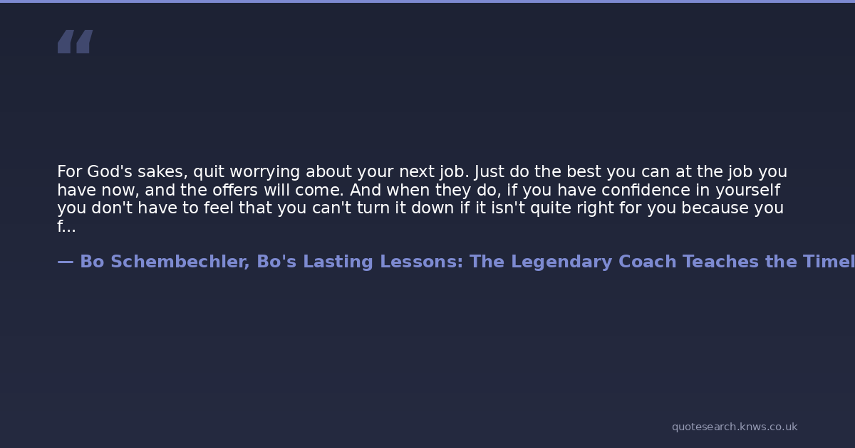 For God's sakes, quit worrying about your next job. Just do the best you can at the job you have now, and the offers will come. And when they do, if you have confidence in yourself you don't have to feel that you can't turn it down if it isn't quite right for you because you fear you'll never get another offer. You will. Wait for the right opportunity, and turn down all the rest. It will make all the difference.