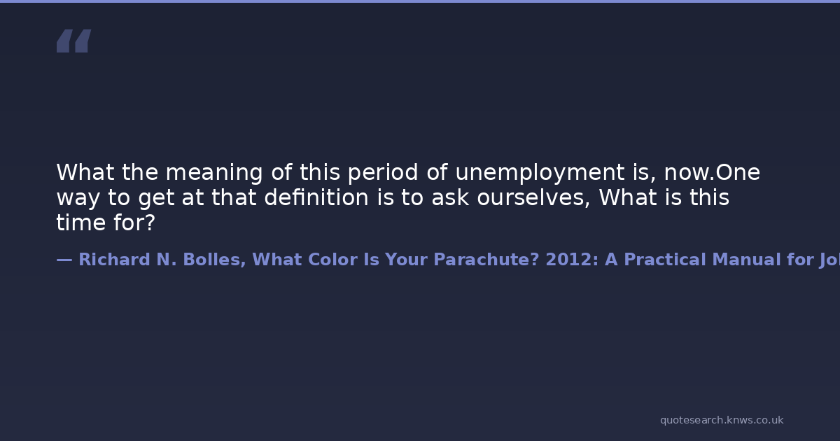 What the meaning of this period of unemployment is, now.One way to get at that definition is to ask ourselves, What is this time for?