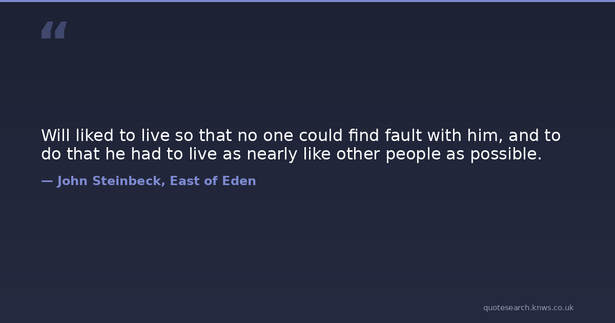 Will liked to live so that no one could find fault with him, and to do that he had to live as nearly like other people as possible.