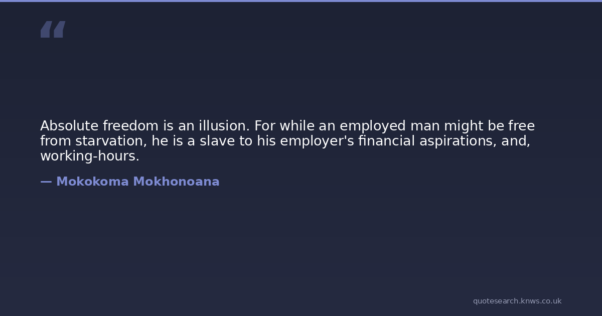 Absolute freedom is an illusion. For while an employed man might be free from starvation, he is a slave to his employer's financial aspirations, and, working-hours.