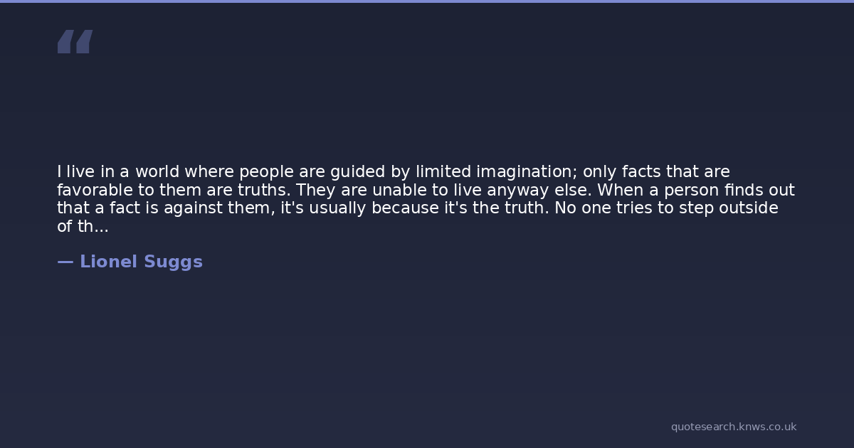 I live in a world where people are guided by limited imagination; only facts that are favorable to them are truths. They are unable to live anyway else. When a person finds out that a fact is against them, it's usually because it's the truth. No one tries to step outside of the edge of reason. No one tries to step beyond the edge of the world.
