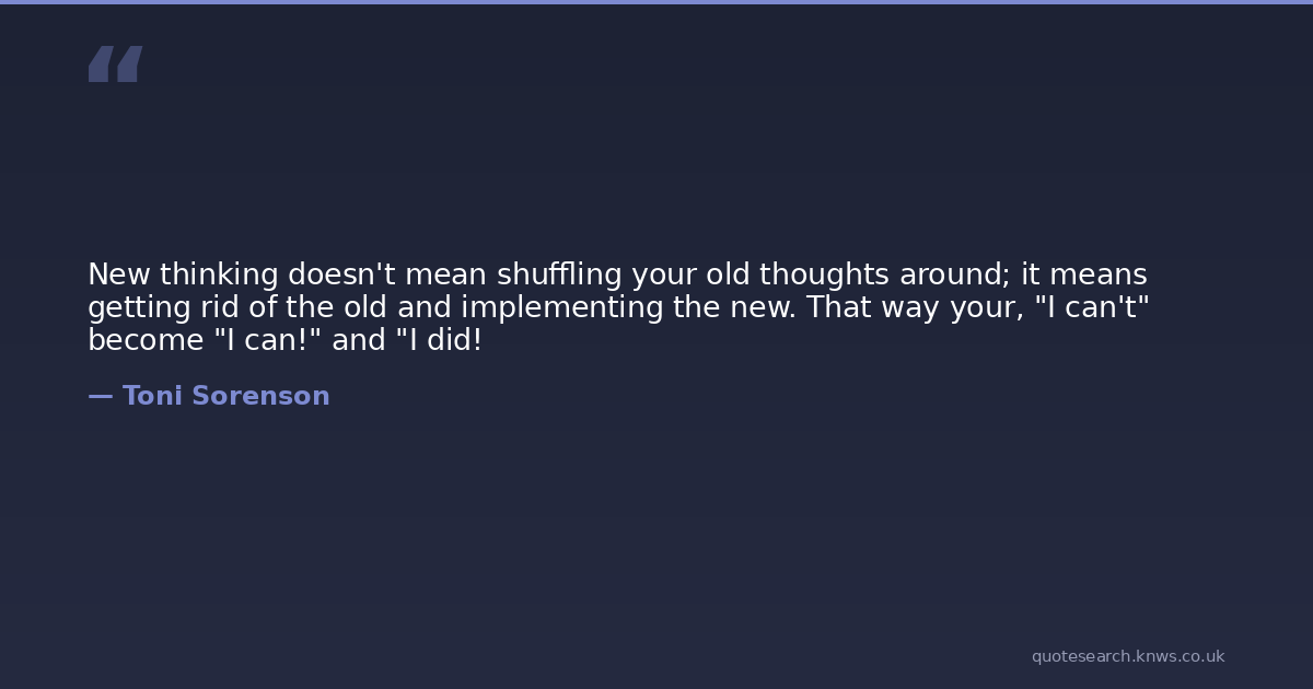 New thinking doesn't mean shuffling your old thoughts around; it means getting rid of the old and implementing the new. That way your, "I can't" become "I can!" and "I did!