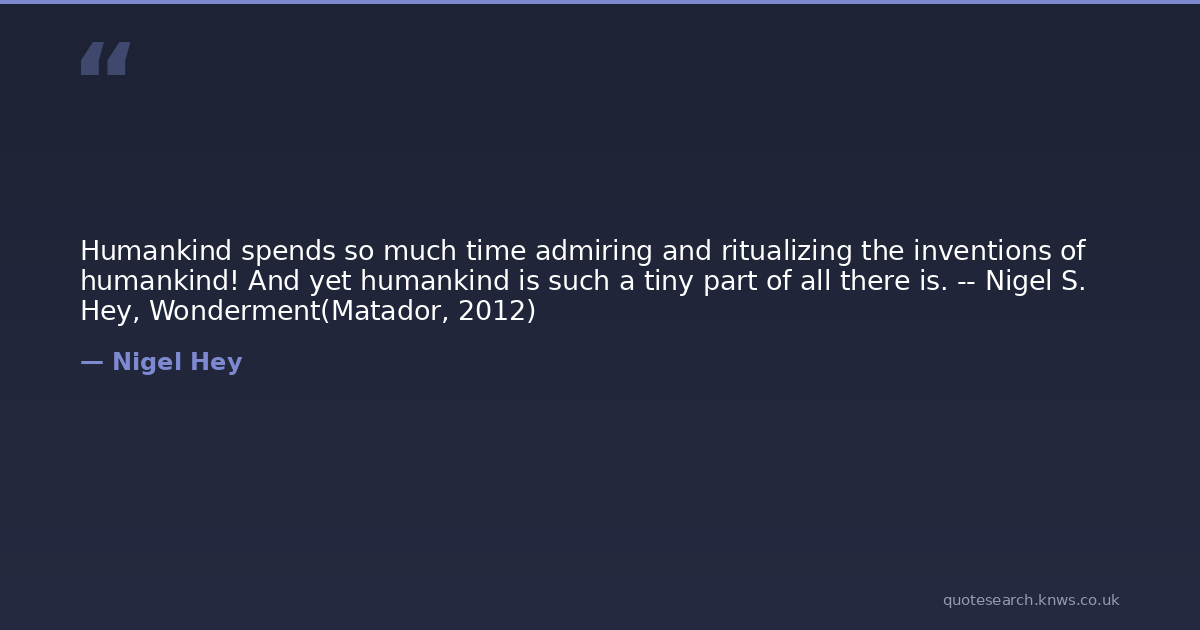 Humankind spends so much time admiring and ritualizing the inventions of humankind! And yet humankind is such a tiny part of all there is. -- Nigel S. Hey, Wonderment(Matador, 2012)