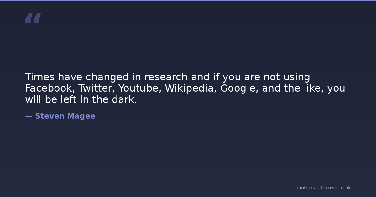 Times have changed in research and if you are not using Facebook, Twitter, Youtube, Wikipedia, Google, and the like, you will be left in the dark.