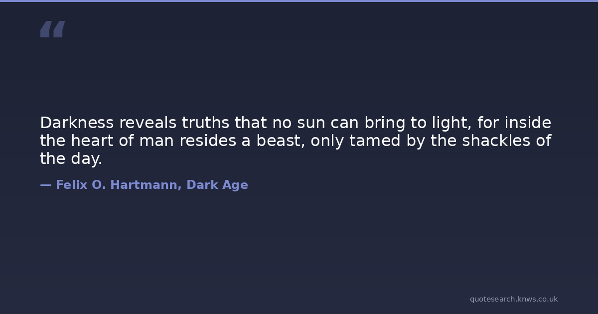 Darkness reveals truths that no sun can bring to light, for inside the heart of man resides a beast, only tamed by the shackles of the day.