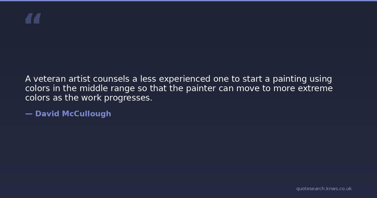 A veteran artist counsels a less experienced one to start a painting using colors in the middle range so that the painter can move to more extreme colors as the work progresses.