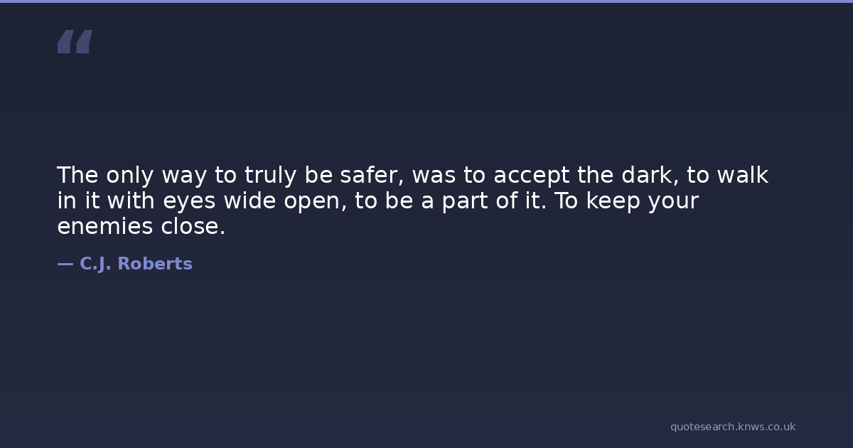 The only way to truly be safer, was to accept the dark, to walk in it with eyes wide open, to be a part of it. To keep your enemies close.