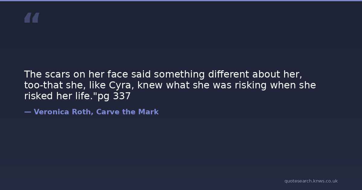 The scars on her face said something different about her, too-that she, like Cyra, knew what she was risking when she risked her life."pg 337
