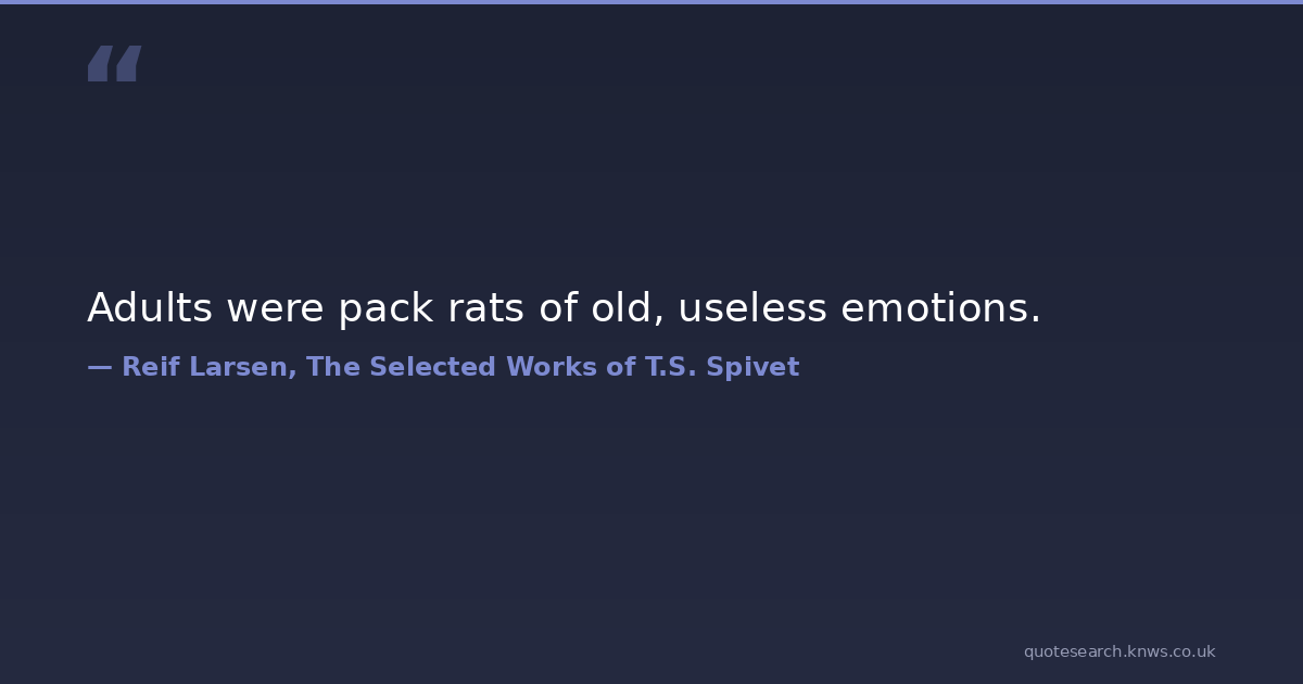 Adults were pack rats of old, useless emotions. emotions Download Image Share on X Share on Facebook Copy Link