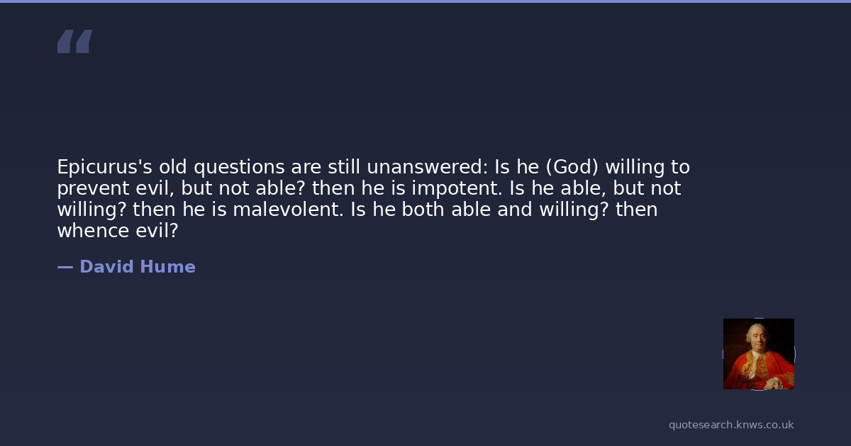 Epicurus's old questions are still unanswered: Is he (God) willing to prevent evil, but not able? then he is impotent. Is he able, but not willing? then he is malevolent. Is he both able and willing? then whence evil?