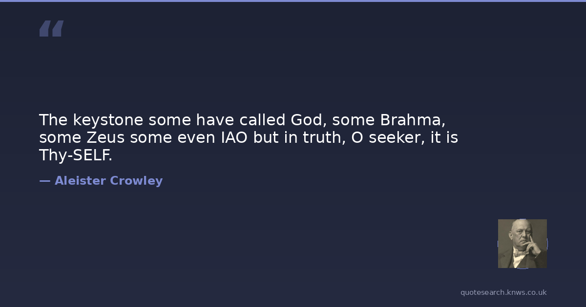 The keystone some have called God, some Brahma, some Zeus some even IAO but in truth, O seeker, it is Thy-SELF.