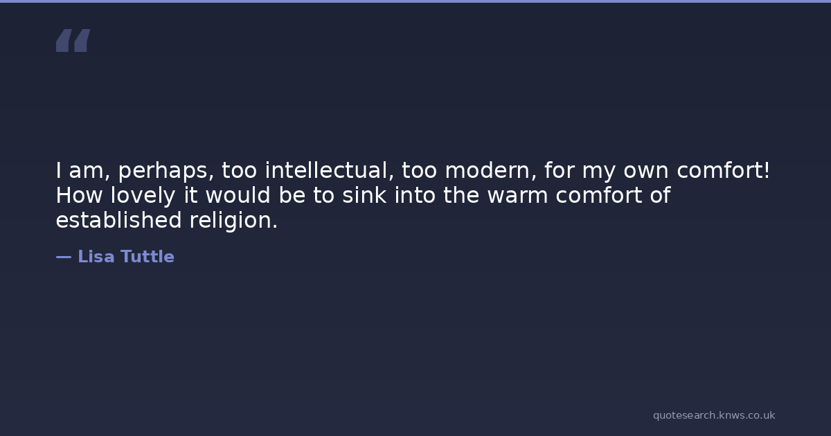 I am, perhaps, too intellectual, too modern, for my own comfort! How lovely it would be to sink into the warm comfort of established religion.