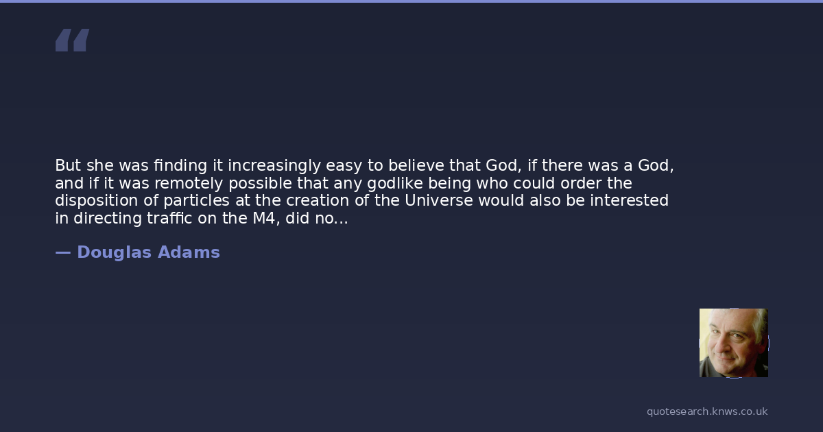 But she was finding it increasingly easy to believe that God, if there was a God, and if it was remotely possible that any godlike being who could order the disposition of particles at the creation of the Universe would also be interested in directing traffic on the M4, did not want her to fly to Norway either.