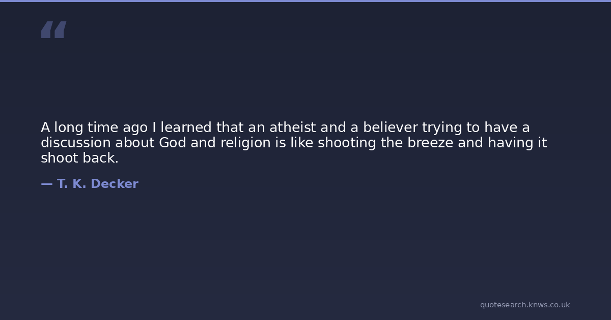 A long time ago I learned that an atheist and a believer trying to have a discussion about God and religion is like shooting the breeze and having it shoot back.