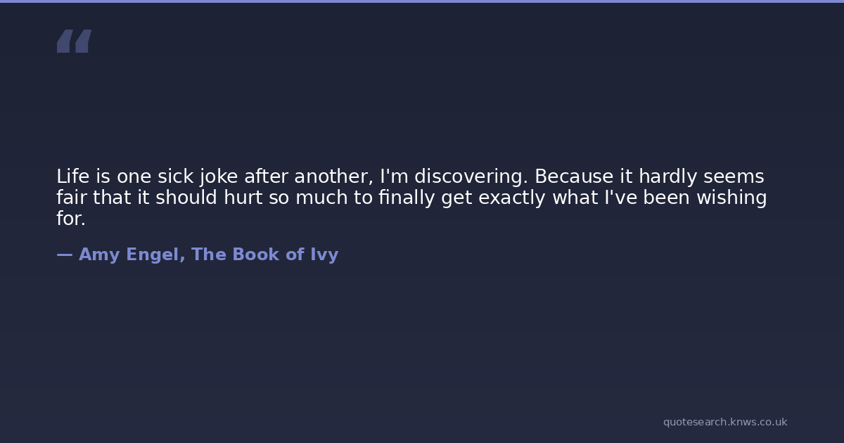 Life is one sick joke after another, I'm discovering. Because it hardly seems fair that it should hurt so much to finally get exactly what I've been wishing for.