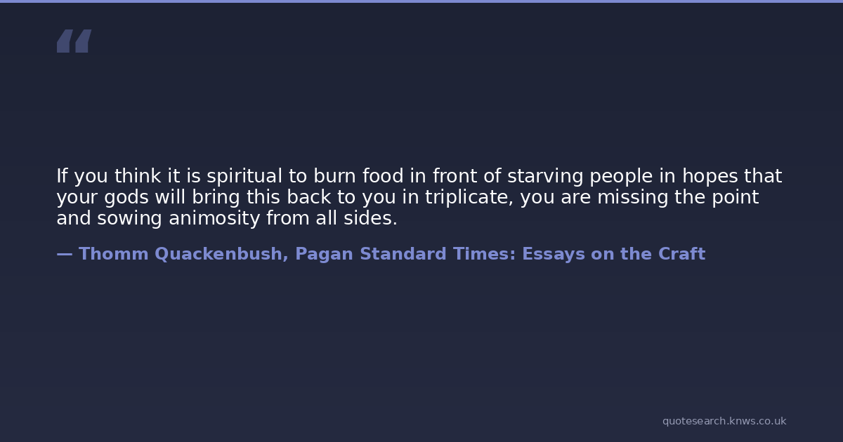 If you think it is spiritual to burn food in front of starving people in hopes that your gods will bring this back to you in triplicate, you are missing the point and sowing animosity from all sides.
