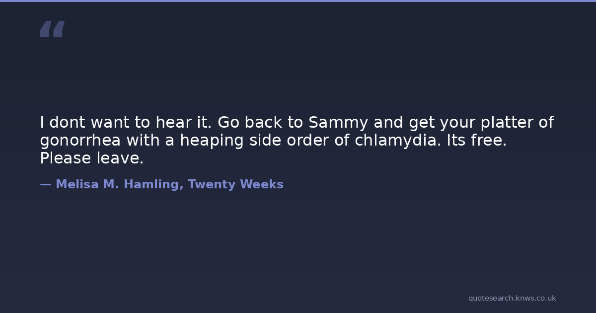 I dont want to hear it. Go back to Sammy and get your platter of gonorrhea with a heaping side order of chlamydia. Its free. Please leave.
