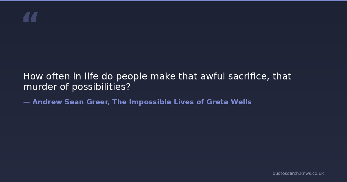 How often in life do people make that awful sacrifice, that murder of possibilities? possibilities sacrifice Download Image Share on X Share on Facebook Copy Link