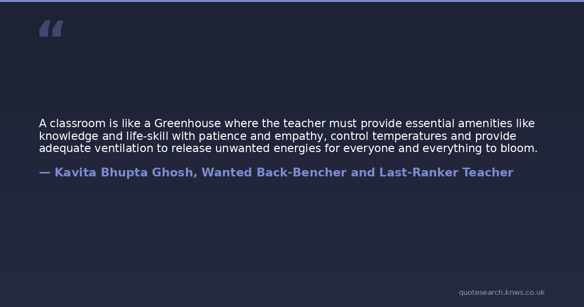 A classroom is like a Greenhouse where the teacher must provide essential amenities like knowledge and life-skill with patience and empathy, control temperatures and provide adequate ventilation to release unwanted energies for everyone and everything to bloom.