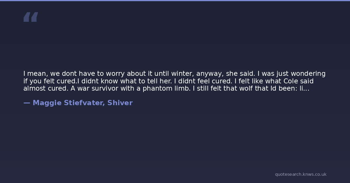 I mean, we dont have to worry about it until winter, anyway, she said. I was just wondering if you felt cured.I didnt know what to tell her. I didnt feel cured. I felt like what Cole said almost cured. A war survivor with a phantom limb. I still felt that wolf that Id been: living in my cells, sleeping uneasily, waiting to be coaxed out by weather or a rush of adrenaline or a needle in my veins. I didnt know if that was real or suggested. I didnt know if one day I would feel secure in my skin, taking my human body for granted.You look cured, Grace said. Just her face was visible at the end of the shower curtain, looking in at me. She grinned and I yelled. Grace reached in just far enough to shut off the tap.Im afraid, she said, whipping the shower curtain open all the way and presenting me with my towel, this is the sort of thing youll have to put up with in your old age. I stood there, dripping, feeling utterly ridiculous, Grace standing opposite, smiling with her challenge. There was nothing for it but to get over the awkwardness. Instead of taking the towel, I took her chin with my wet fingers and kissed her. Water from my hair ran down my cheeks and onto our lips. I was getting her shirt all wet, but she didnt seem to mind. A lifetime of this seemed rather appealing. I said gallantly, That better be a promise.