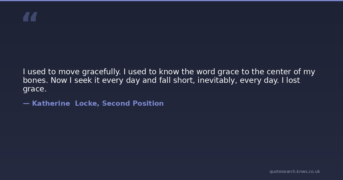 I used to move gracefully. I used to know the word grace to the center of my bones. Now I seek it every day and fall short, inevitably, every day. I lost grace.