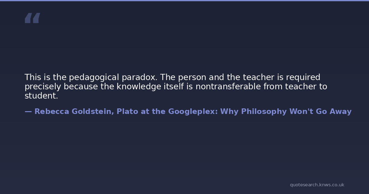 This is the pedagogical paradox. The person and the teacher is required precisely because the knowledge itself is nontransferable from teacher to student.