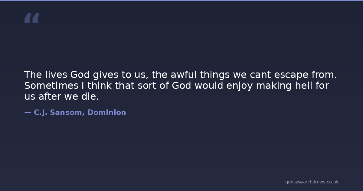 The lives God gives to us, the awful things we cant escape from. Sometimes I think that sort of God would enjoy making hell for us after we die.