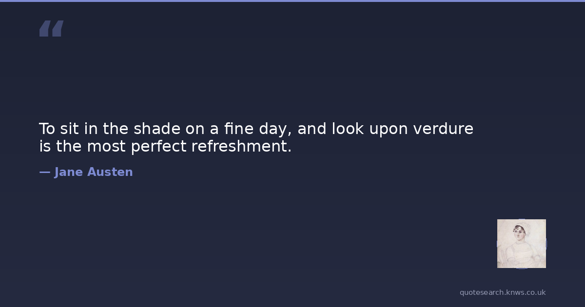To sit in the shade on a fine day, and look upon verdure is the most perfect refreshment.