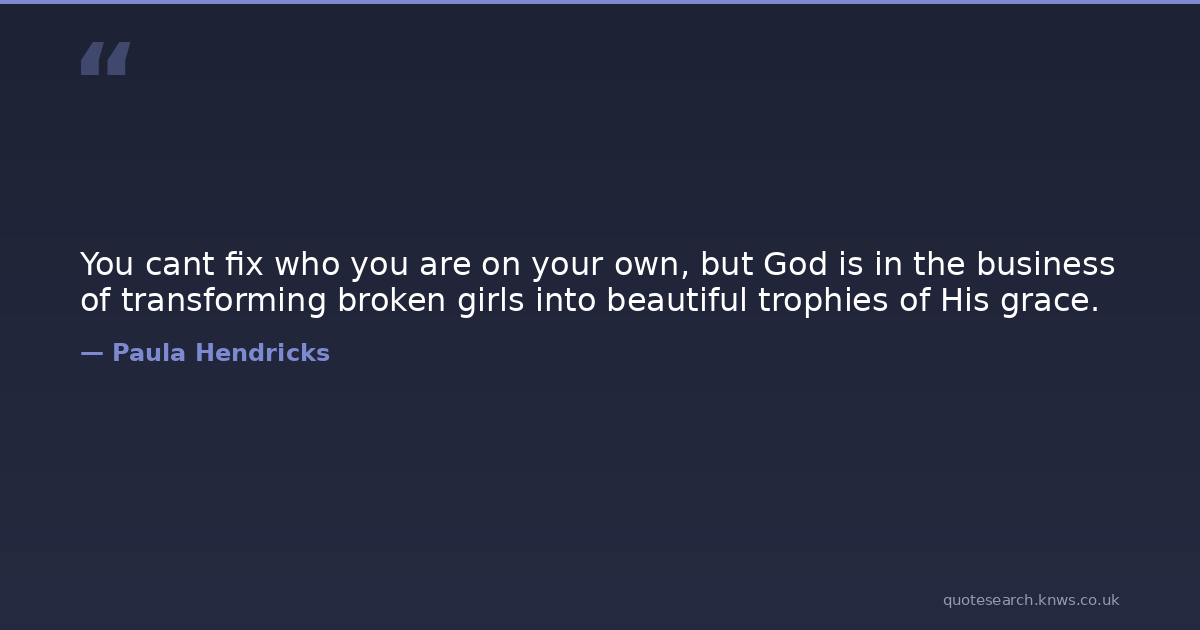 You cant fix who you are on your own, but God is in the business of transforming broken girls into beautiful trophies of His grace.