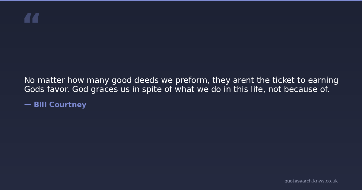 No matter how many good deeds we preform, they arent the ticket to earning Gods favor. God graces us in spite of what we do in this life, not because of.