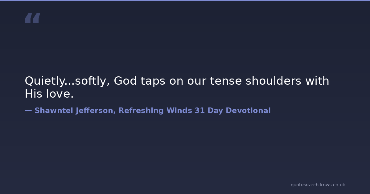 Quietly...softly, God taps on our tense shoulders with His love. grace love peace refreshing winds Download Image Share on X Share on Facebook Copy Link